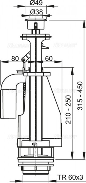 Конструкция позволяет регулировать высоту механизма в зависимости от высоты бачка